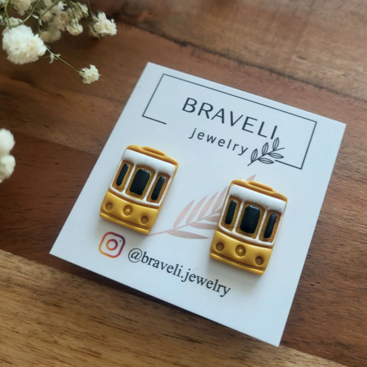 Turn tradition into fashion! Take Lisbon’s most famous icon with you. Handmade tram-shaped earrings made from clay. Also available in store: Braveli earrings with swallows and sardines.